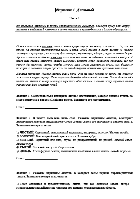 Особенностью заданий является их тематическое единство: каждый вариант посвящён определённому времени года.