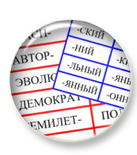 - Игра «Составь слова», представляющая из себя разделенные на части слова, которые необходимо собрать. (Например, КРАСН-, РЕШЕТ-, -ЕНЬКИЙ, -ЧАТЫЙ). Слова можно собрать только единственно правильным образом.