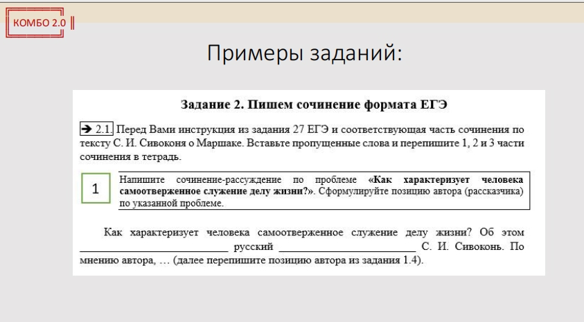 «Сочинение Комбо 2.0» - это комплект рабочих листов, предназначенных для обучения старшеклассников написанию итогового сочинения и сочинения формата ЕГЭ. Это продолжение комплекта Комбо>>>, опубликованного в 2023 году. Задания в комплектах не повторяются.