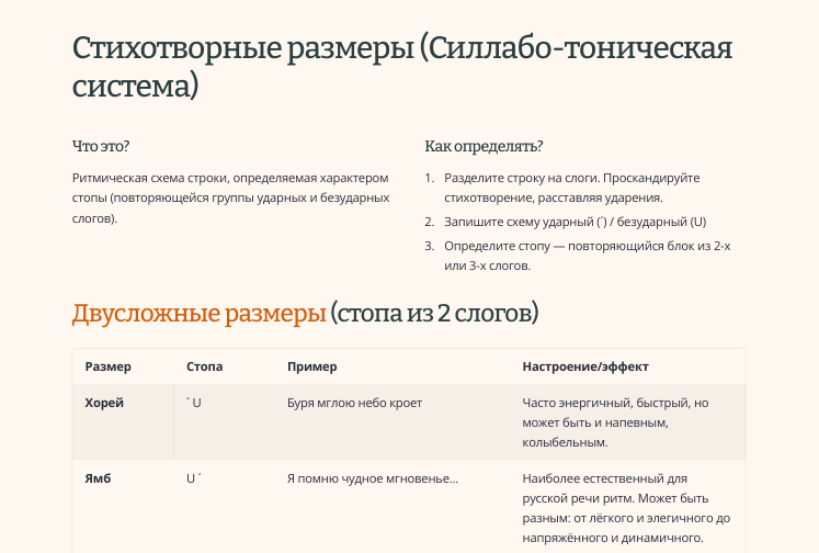 - Презентация-инструкция «Как определить стихотворный размер» с пошаговым алгоритмом, который снимет страх перед незнакомым текстом